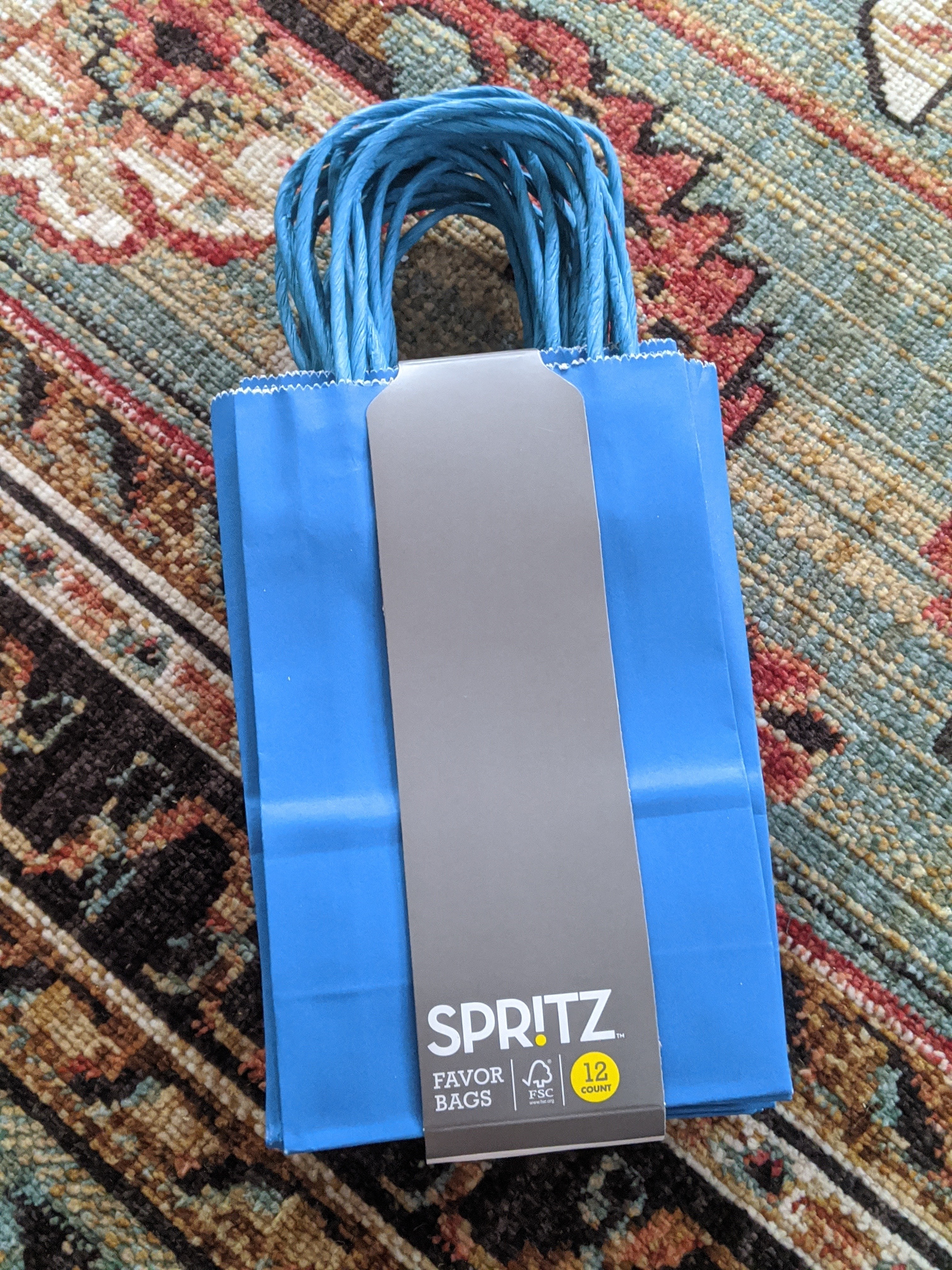 I purchased these blue bags and white paper from Target. And I purchased the Ice Breaker mints off of Amazon. Into the bag went a container of mints and a game board, I added the tissue paper and the personalized instruction tag (download below) and BAM! A cute little invite and favor in one for under $3 a person.